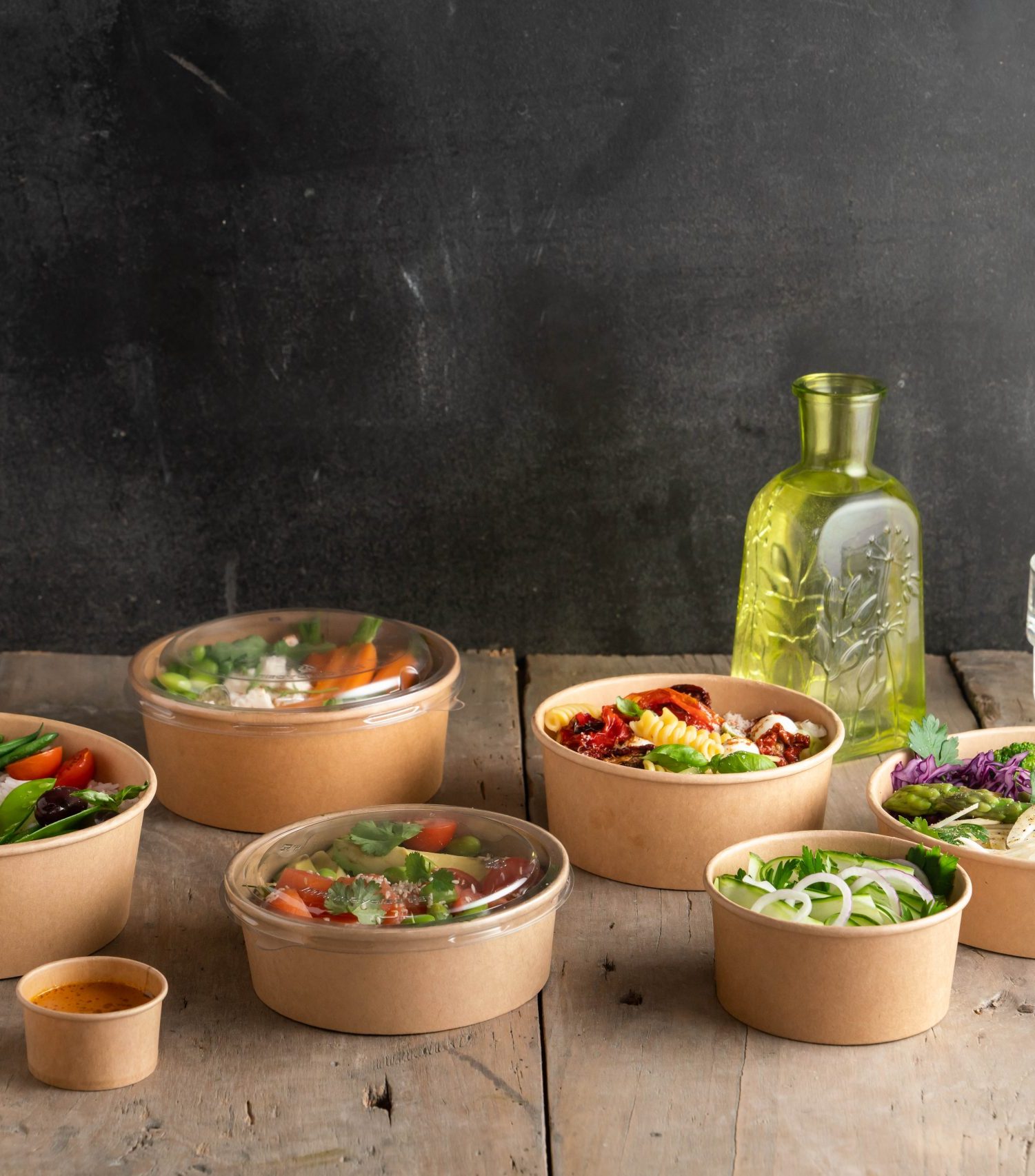 Prøv vår populære serie runde boller, produsert av FSC-sertifisert papir med et tynt PE-belegg på innsiden. Bollene kommer i mange forskjellige størrelser og dimensjoner og egner seg utmerket til både varm og kald mat. Det smarte designet gjør det enkelt å stable boksene. Kommer med rPET-lokk som både har antidugg-funksjon samt er resistente mot lekkasje. Bollene måler 18,5 x 6,4 cm og rommer 1300 ml. Selges i kartonger med 300 stk.